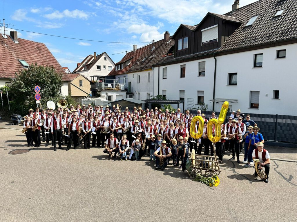 Ziel erreicht! Denn die Idee war es, zum Schäferlauf im Jubiläumsjahr 2025 mit 100 Musiker*innen aufzulaufen. Dabei waren neben Blasorchester, Jugendkapelle und Oldies auch einige ehemalige Musiker sowie Freunde des Musikvereins.